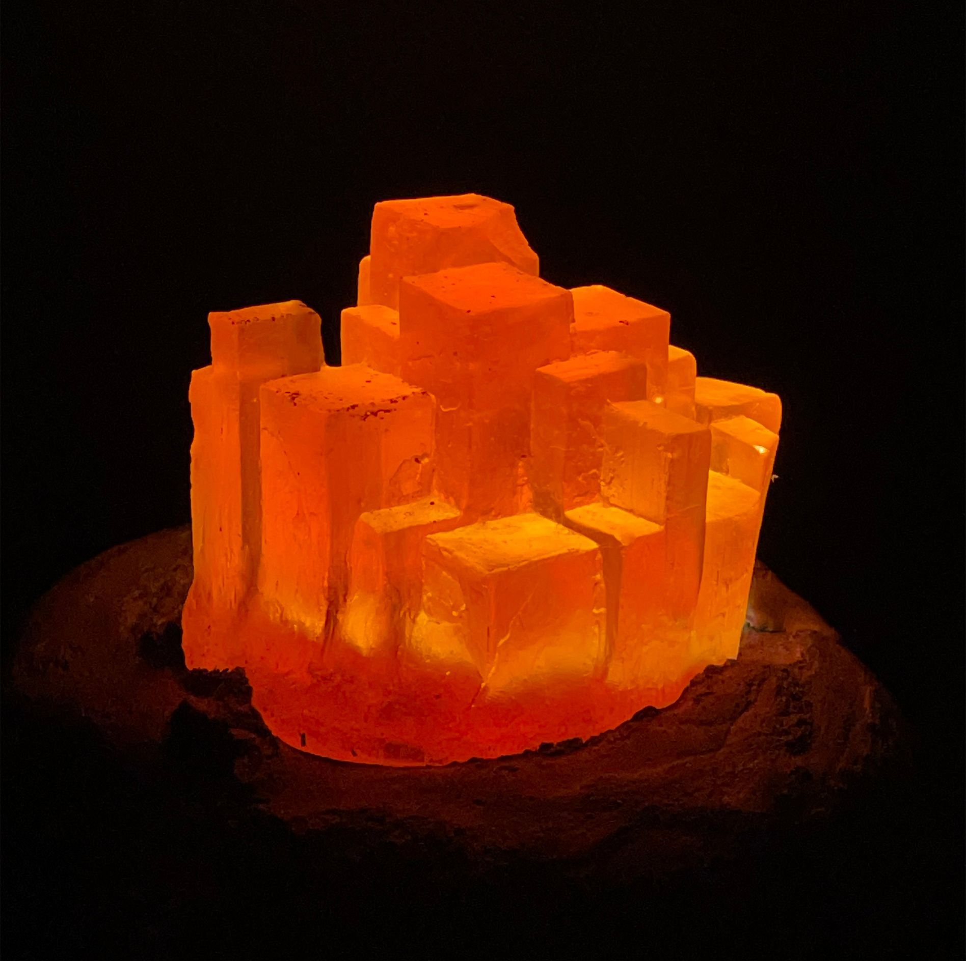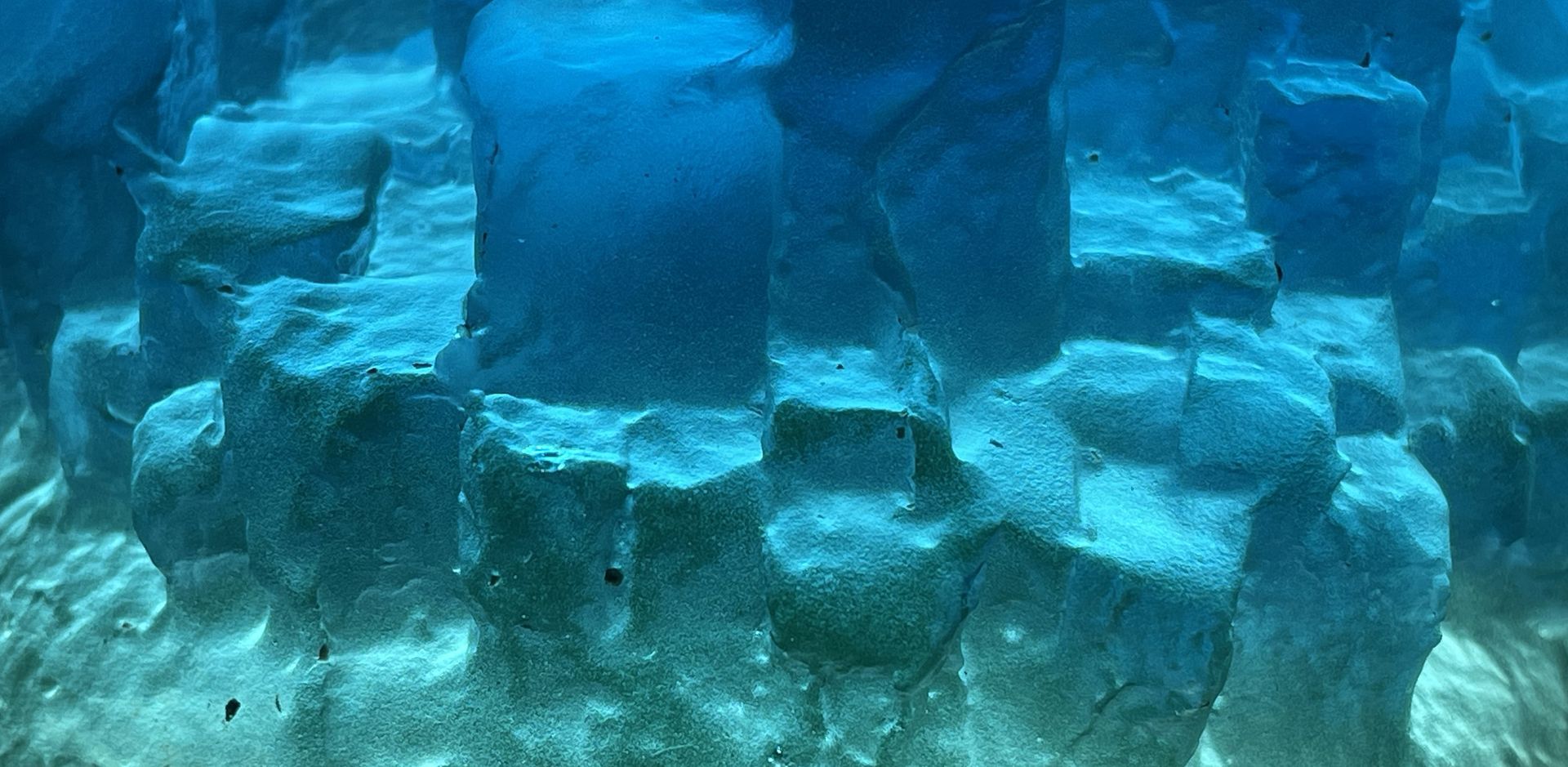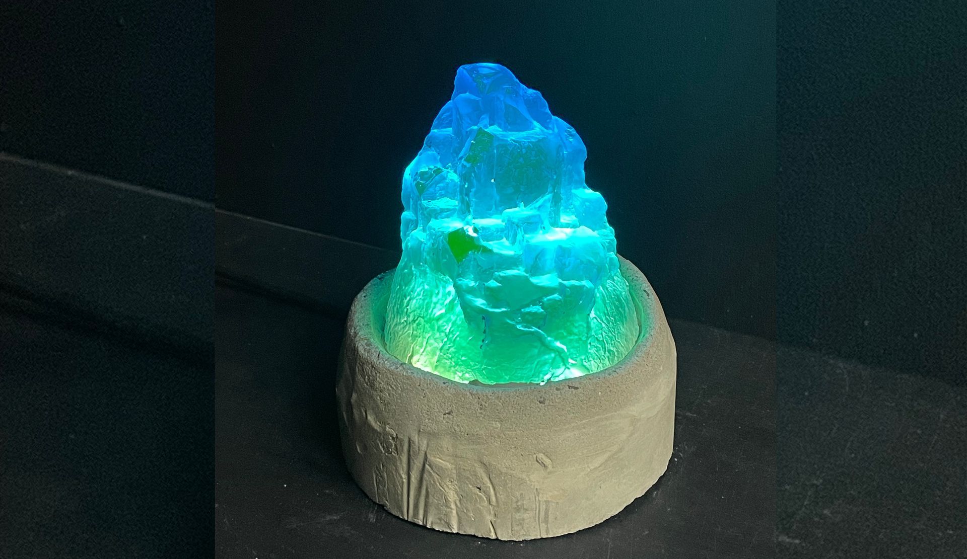 De kleur van glas hangt samen met de mineralen die het bevat. In het volgende object zit kobalt, dat maakt het blauw. Plus een miniscuul beetje uranium, waardoor